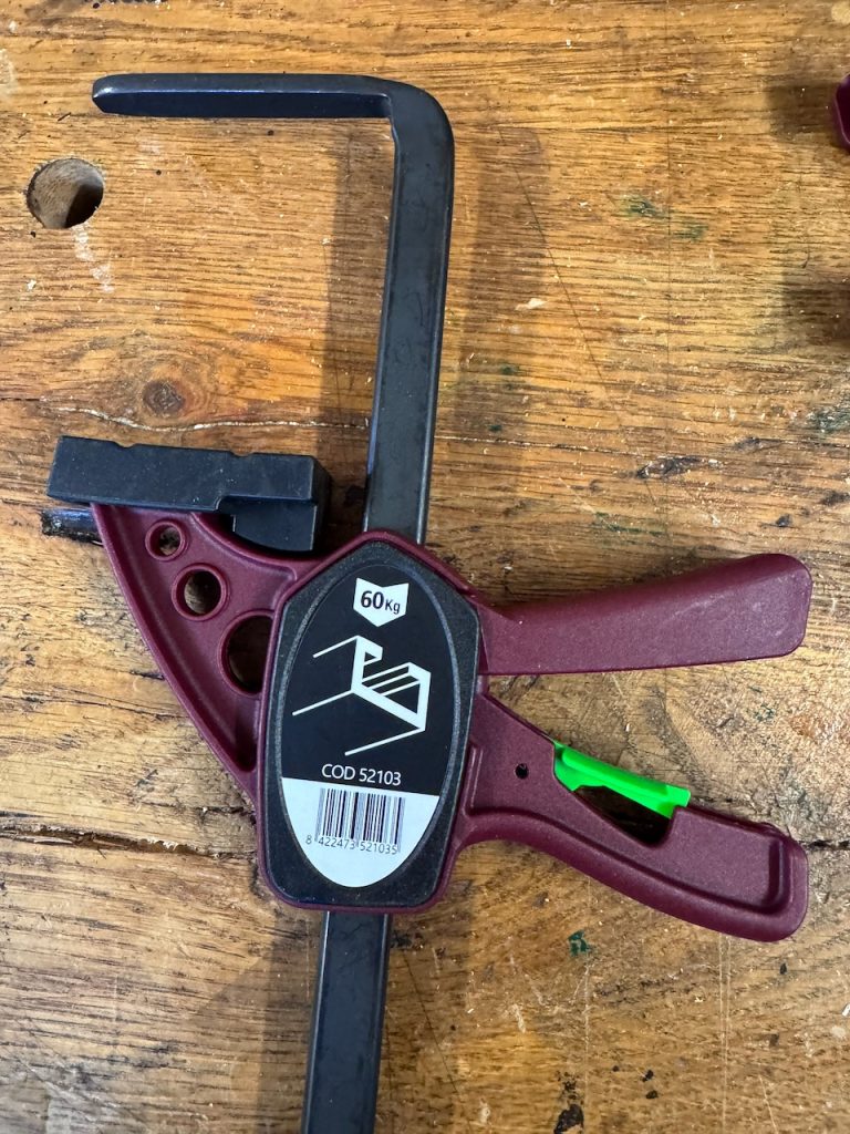 Auf diese Zwingen haben mich vor einiger Zeit meine Leser aufmerksam gemacht. Und als diese Zwingen am Jahresanfang beim meinem Werkzeughändler im Angebot waren, habe ich mir diese aus Neugier einmal mitgenommen. Denn es gilt ja der Satz: „Zwingen kann man nie genug haben“.