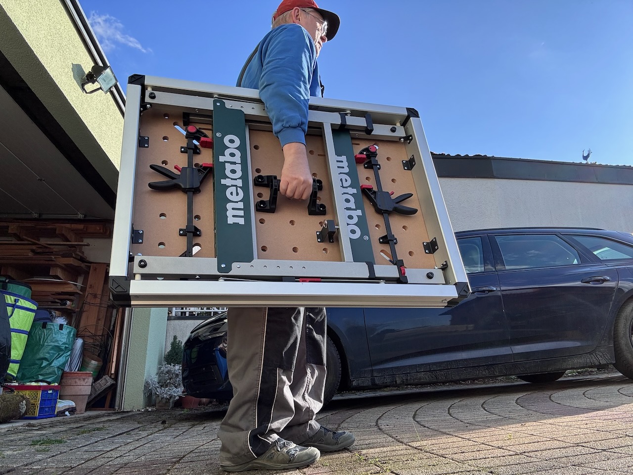 Für den Einsatz unterwegs war ich auf der Suche nach einer kleinen, transportablen Werkbank. Dabei soll überwiegend mit Elektrowerkzeug gearbeitet werden. Und so bin ich auf den Multifunktionstisch Metabo MWB100 gestoßen.